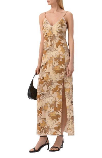 Платье Kajani с широкими бретелями и завышенной талией выполнили из переработанного полиэстера с принтом под змею. Модель с потайной молнией сбоку и высокими разрезами на подоле дополнили на спинке эластичной вставкой в тон.