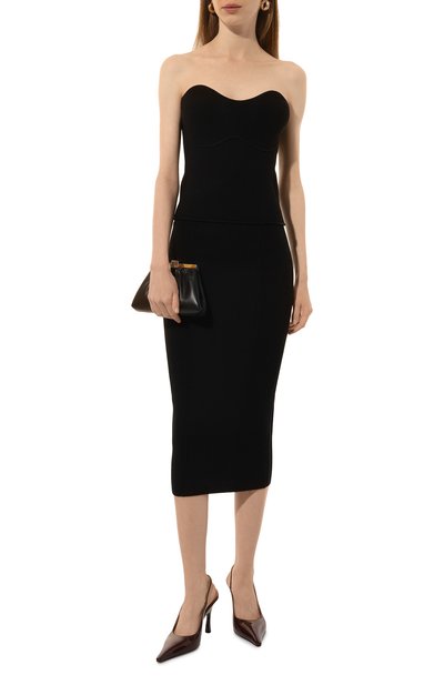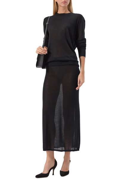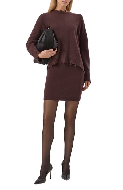 Для создания эластичной мини-юбки The Cruise использовали трикотаж из шерсти мериноса. Модель дополнили широким поясом в рубчик и двумя карманами с брендированными золотистыми пуговицами.