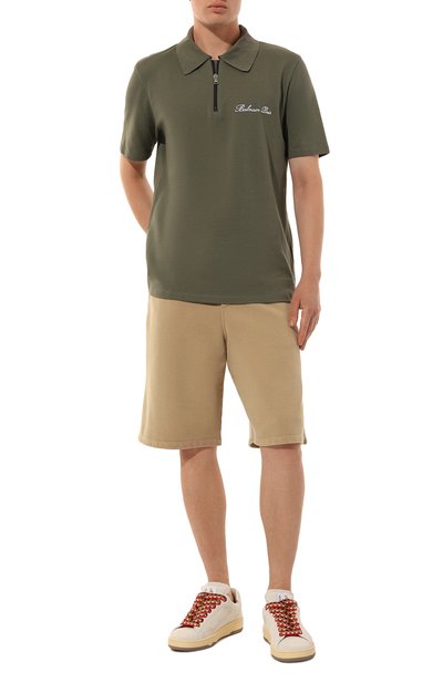 Поло с небольшими боковыми разрезами выполнили из меланжевого льняного джерси. Пояс модели дополнили миниатюрным брендированным ярлыком слева.