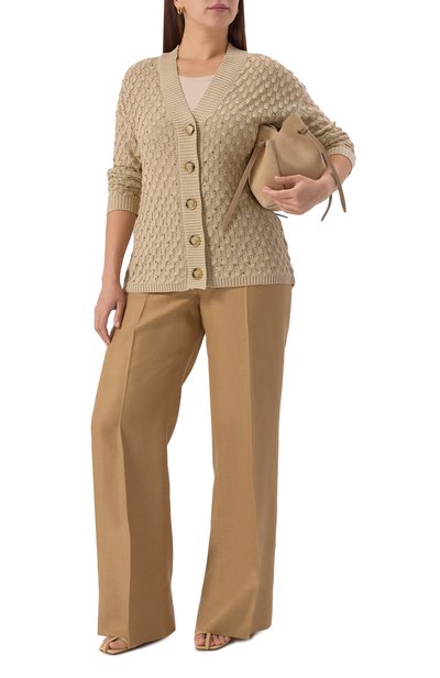 Кардиган с рукавами реглан связали из пряжи на основе шерсти с добавлением вискозы, нейлона и кашемира. Модель с брендированными пуговицами дополнили двумя накладными карманами.