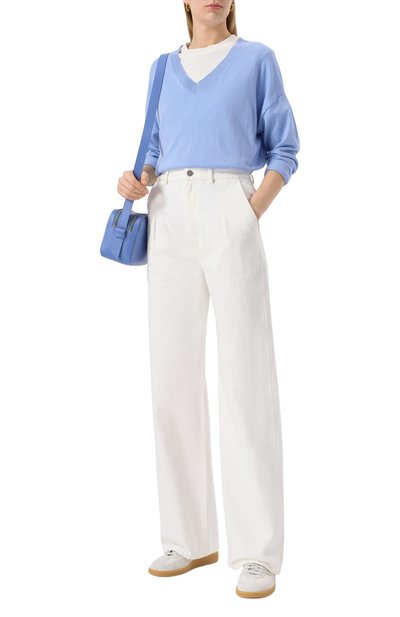 Пуловер Rania с отделкой в рубчик выполнили из тонкого шелкового трикотажа с добавлением хлопка. Модель с глубоким V-образным вырезом и спущенной линией плеч одинаково комфортно носить и поверх футболки или блузы, и на голое тело.