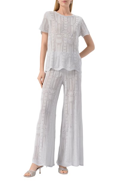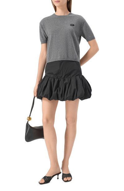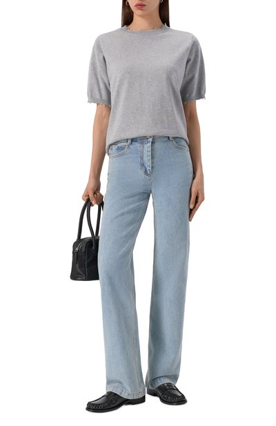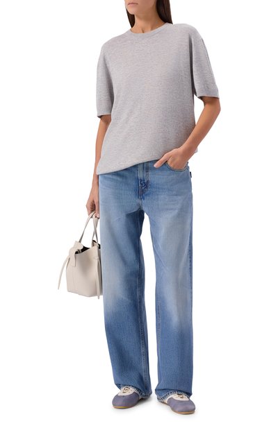 Пуловер с ребристыми горловиной, поясом и манжетами выполнен из хлопкового трикотажа с добавлением кашемира. Сзади закреплена фирменная миниатюрная заклепка с кристаллом.