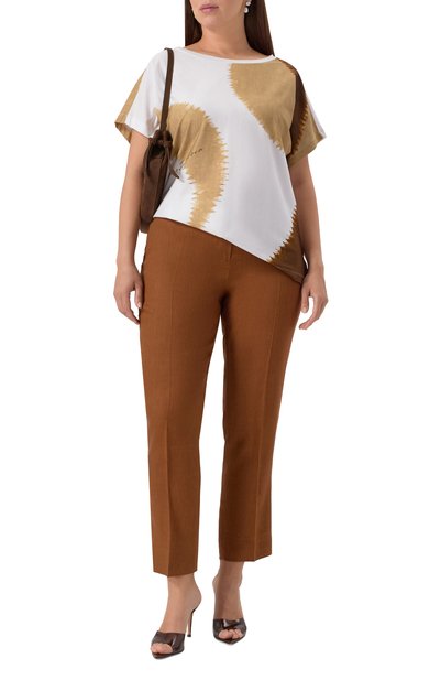 Зауженные брюки Verve со средней посадкой сшиты из эластичного хлопкового габардина. Укороченная модель со стрелками и небольшими разрезами по бокам дополнена втачным поясом на резинке.