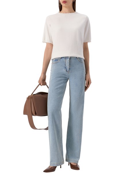 Для изготовления пуловера Zibetto использовали трикотаж на основе шелка и хлопка. Круглую горловину, манжеты и пояс выполнили в рубчик.