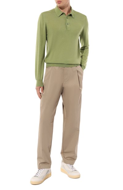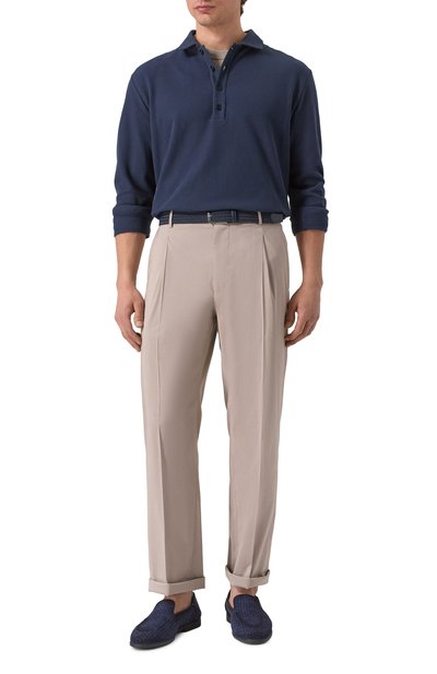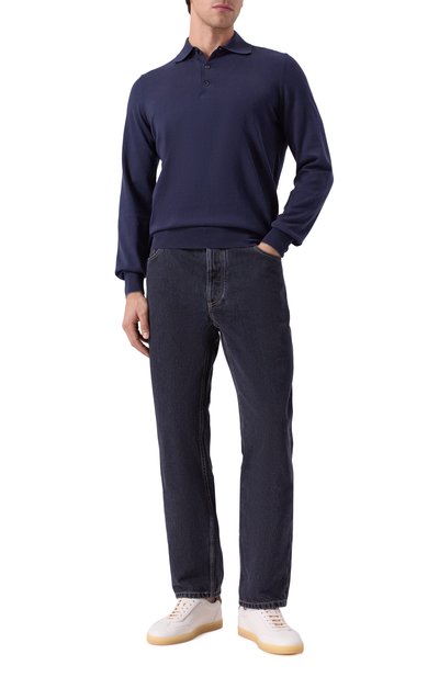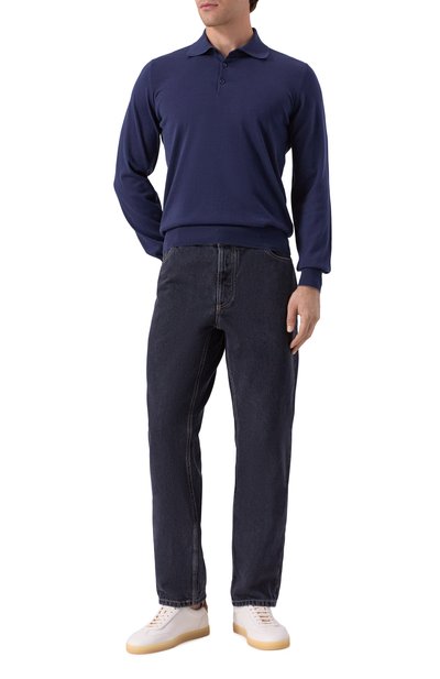 Oversize-поло выполнили из хлопкового трикотажа с «вафельной» текстурой. Модель на четырех перламутровых пуговицах одинаково хорошо сочетается с одеждой и в темной, и в светлой палитре.