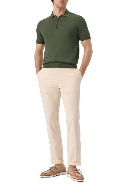 Поло из хлопка пике украсили вышивкой Equestrian Knight Design в тон, а пуговичную планку укрепили внутри тканью в клетку Burberry Check. Модель с шевронным узором на эластичных манжетах и воротнике дополнили боковыми разрезами.