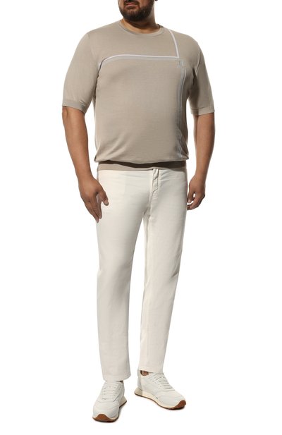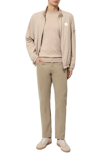Джемпер с горловиной, манжетами и поясом в рубчик связали из органического хлопка Sea Island, выращенного на карибских островах. Модель гармонично будет смотреться и с брюками в тон, и с контрастными джинсами или шортами.