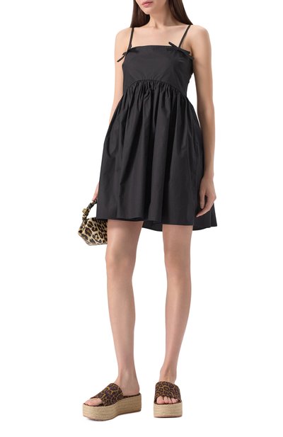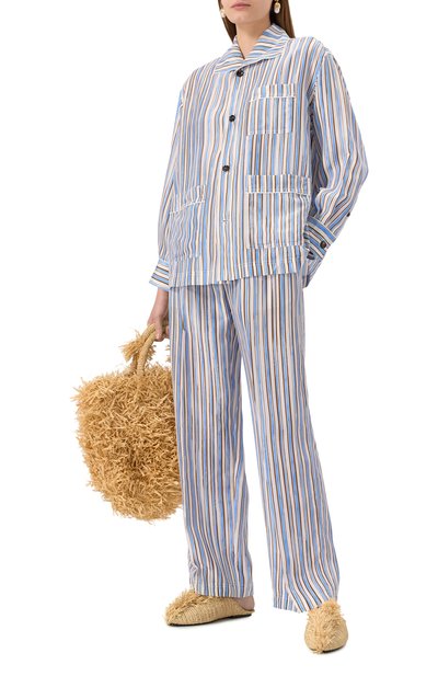 Сабо на широкой протекторной подошве с формованной стелькой, обтянутой кожей, сплели из рафии. Модель дополнили ремешком с металлической пряжкой на союзке.