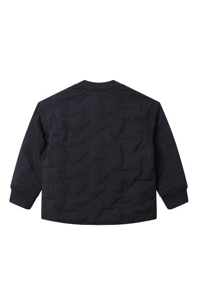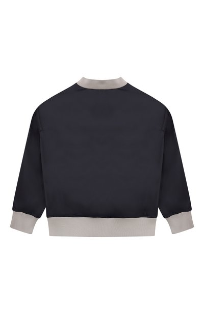 Бомбер из водоотталкивающего полиэстера утеплили тонким наполнителем. Куртку с боковыми карманами дополнили контрастными трикотажными манжетами, поясом и воротником.