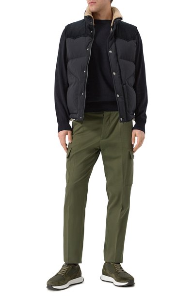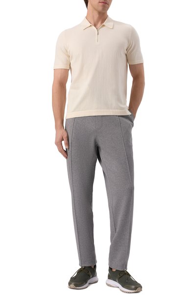 Кроссовки на контрастной двухслойной подошве сшили из гладкой кожи и текстиля с рельефным узором. Модель с тисненым логотипом на язычке дополнили шнуровкой со скользящим фиксатором.
