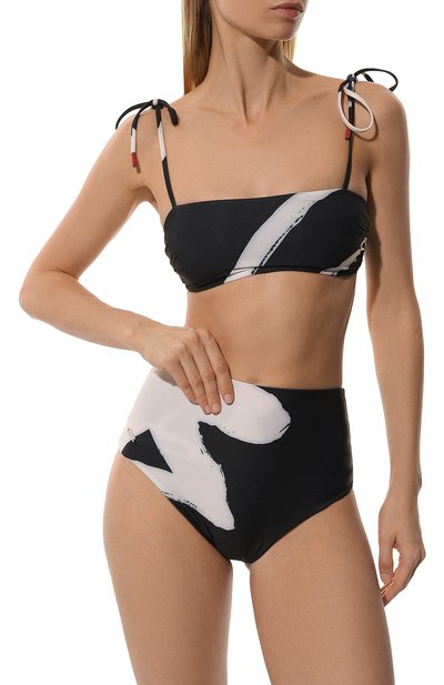 Бра-бандо изготовили из эластичного нейлонового джерси. Модель с завязывающимися поясом и бретелями украсили полосой из фирменной цепочки мониль.