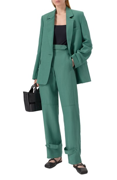 Брюки с тремя карманами сшили из чистого льна, сотканного на фабрике итальянской марки Albini со 140-летней историей. Наши стилисты предлагают создать элегантный образ с парным жакетом и туфлями-лодочками.
