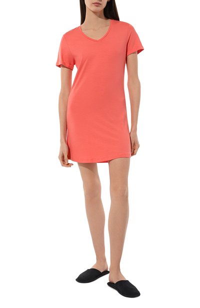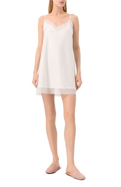 Короткую сорочку из коллекции Silk Dreams выполнили из тонкого джерси на основе модала с добавлением шелка. Круглую горловину, широкие цельнокроеные рукава и край подола отделали блестящим атласом.