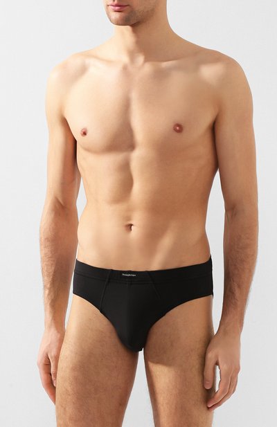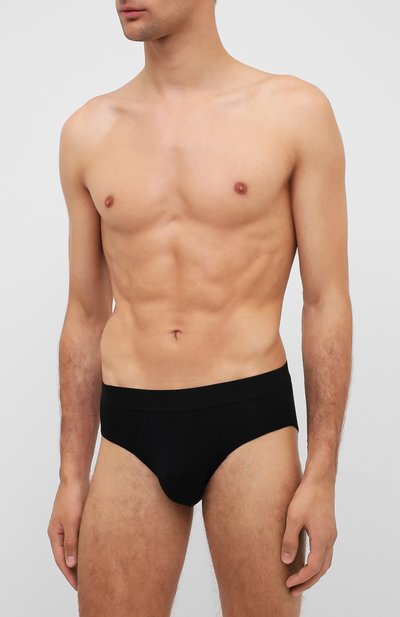 Для изготовления брифов использовали джерси на основе модала и хлопка. Изделие дополнили широким эластичным поясом с контрастным логотипом марки спереди.