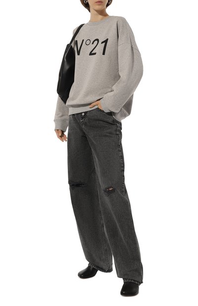 Свитшот из коллаборации с Asics украсили комбинированным принтом с символикой марок спереди. Градиентную модель, окрашенную в готовом виде, выполнили из органического хлопка.