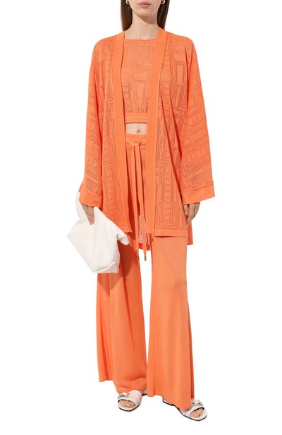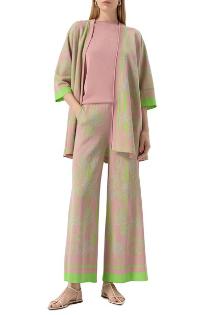 Широкие градиентные брюки Haze из капсульной коллекции, созданной совместно с Asics, выполнили из влагоотталкивающего материала. Модель с поясом кулиской, боковыми и накладными задними карманами украсили спереди принтом, в котором объединили логотипы обеих марок.