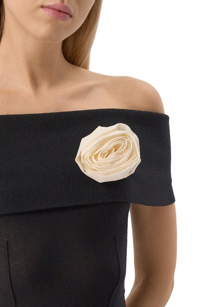 Объемную брошь в виде цветка выполнили из шелка. Модель дополнили брендированной булавкой из замака с гальваническим покрытием золотом.