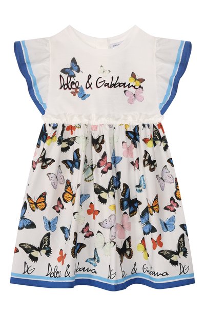 В коллекцию Farfalle вошло платье из хлопкового поплина с принтом в виде бабочек. Модель с полосками по краю рукавов-крылышек и подола застегивается потайной молнией сзади. В комплекте — шорты из такой же ткани.