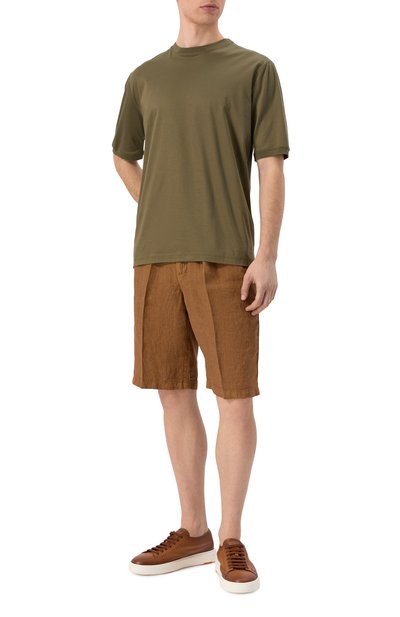 Хлопковые шорты с поясом-кулиской, боковыми и задними прорезными карманами на молниях вошли в коллекцию DNA. Модель с прошитыми стрелками украсили фирменной многослойной пластиной спереди.