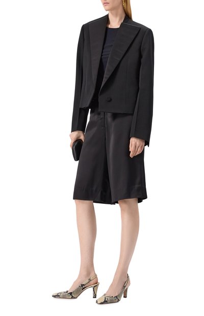 Туфли Anok Sling с зауженным мысом изготовили из атласа с леопардовым принтом, выбрав для внутренней отделки мелкозернистую кожу. Ремешок модели на шпильке дополнили эластичной вставкой сзади.