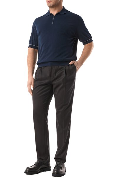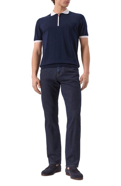 Поло кроя Regular fit, сшитое из гладкого шелкового трикотажа, поддержит образы в стиле casual. Отложной воротник изделия, манжеты и планку молнии подчеркнули контрастным жаккардовым кантом.