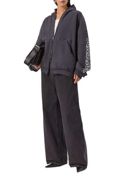 Толстовка силуэта oversize сшита из хлопкового трикотажа. Модель с регулируемым капюшоном, заниженной линией плеч и двумя накладными карманами украшена фирменным числовым кодом сзади.