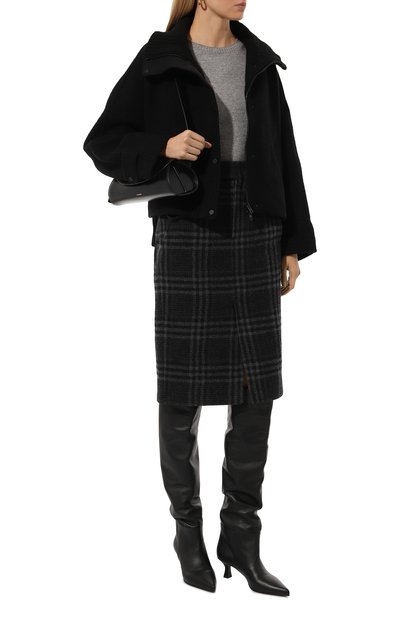 Ботфорты Kind с открытым мысом выполнили из хорошо драпирующейся тонкой замши. Модель с золотистым логотипом на широком голенище без застежки установили на фигурный устойчивый каблук с тисненой эмблемой.