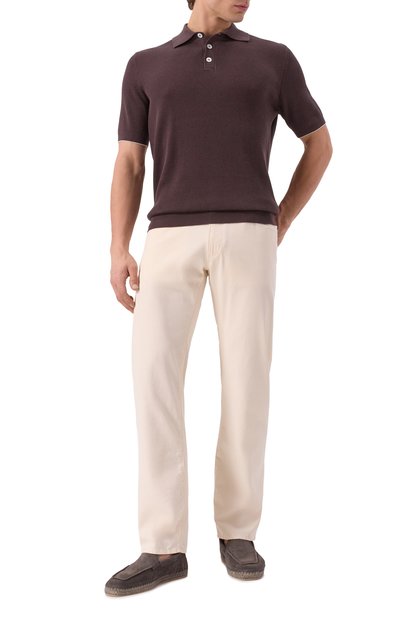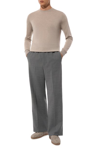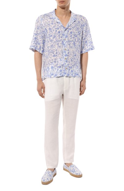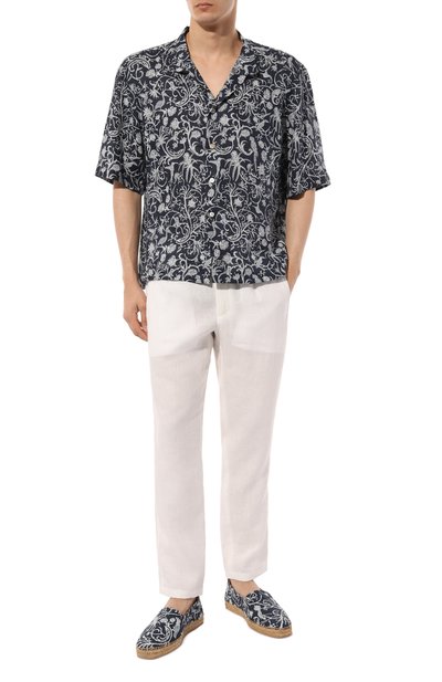 Эспадрильи на прорезиненной джутовой подошве сплели из узких полос глянцевой кожи. Высокую союзку модели украсили фирменной многослойной пластиной.