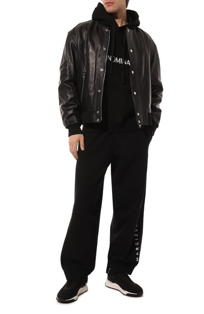 Кроссовки Bounce на амортизирующей подошве выполнили из трикотажа с сетчатой фактурой. Шнуровку пары укрепили кожей в тон, а задник со стежком фирменного оттенка Arancio Santoni окрасили в технике velatura.