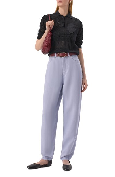 Слегка укороченные джинсы cigarette выполнили из хлопка bull с небольшим добавлением эластана. Модель с четырьмя карманами дополнили брендированным патчем на поясе сзади.