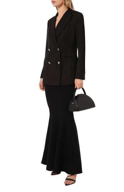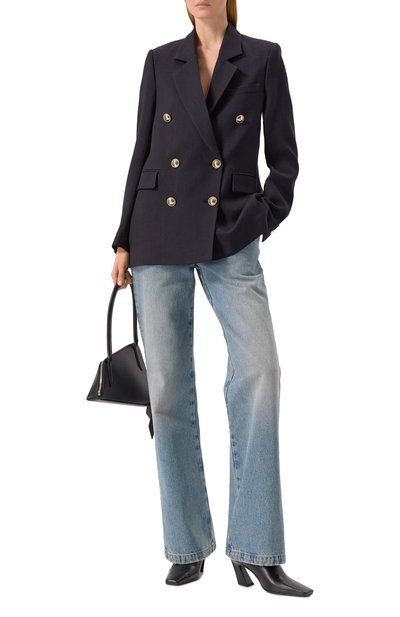 Приталенный двубортный жакет Lerici выполнен из вискозного джерси. Модель с широкими лацканами и парой боковых карманов с клапанами застегивается золотистыми пуговицами.