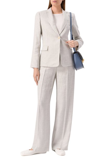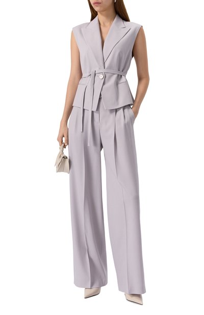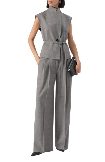 Жилет в клетку Glencheck выполнили из ткани на основе шерсти первого пострига. Модель с боковыми карманами и остроконечными лацканами дополнили двумя ремешками на пуговицах сзади.