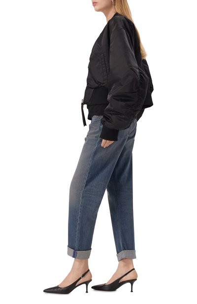 Туфли с зауженным мысом сшили из лакированной телячьей кожи. Модель с внутренней отделкой из наппы поставили на скульптурный каблук с чехлом, переходящим в узкие регулируемые ремешки на щиколотке.