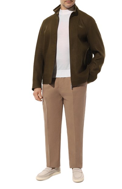 Для пошива куртки в байкерском стиле использовали мягкую кожу растительного дубления. Модель с воротником-стойкой на кнопке и застежкой на молнию дополнили боковыми карманами и одним внутренним. Спинка декорирована патчем с логотипом марки.