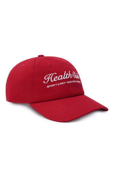 Бейсболку из хлопковой ткани украсили надписью Health Club и логотипом, вышитыми на тулье из шести клиньев. Посадку аксессуара можно отрегулировать ремешком с брендированной пряжкой.