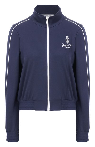 Толстовка Vendome с воротником-стойкой выполнена из полиэстера. Рукава подчеркнуты контрастным кантом, а на груди вышита символика марки. Укороченная модель с широким поясом застегивается молнией.
