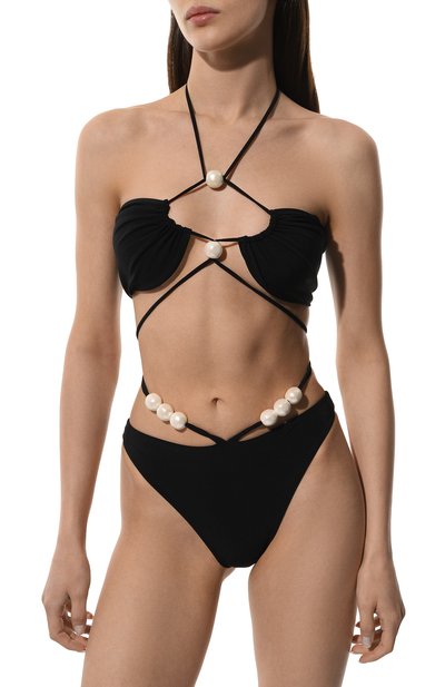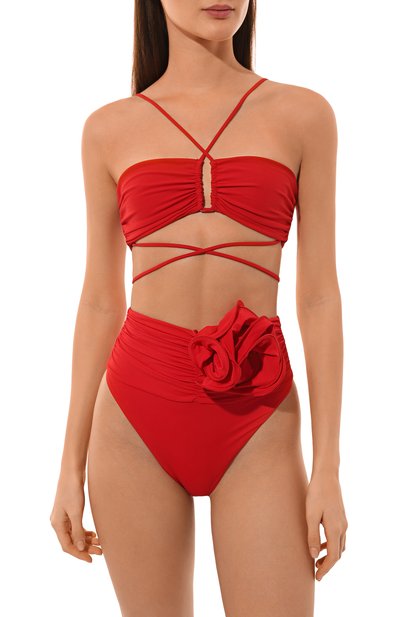 Бра-бандо из полиамида стрейч с геометрическим принтом составит гармоничный пляжный дуэт с парными плавками. Модель с бретелями-завязками застегивается круглой брендированной пряжкой сзади.