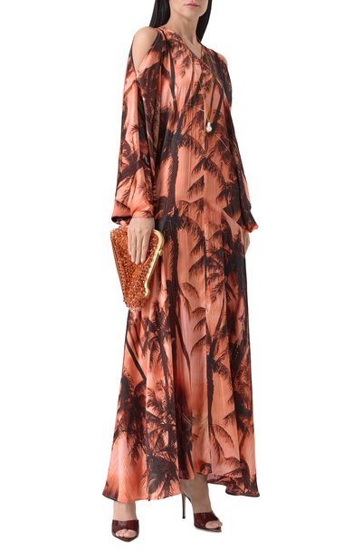 Мини-платье Rucas с эластичной талией и расклешенным подолом выполнили из шелка с жаккардовым узором Flash Hearts. Модель с V-образным вырезом дополнили на драпированном лифе запахом с потайной застежкой.