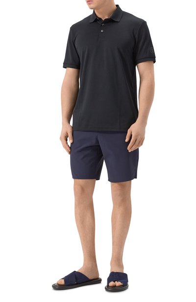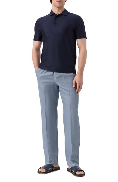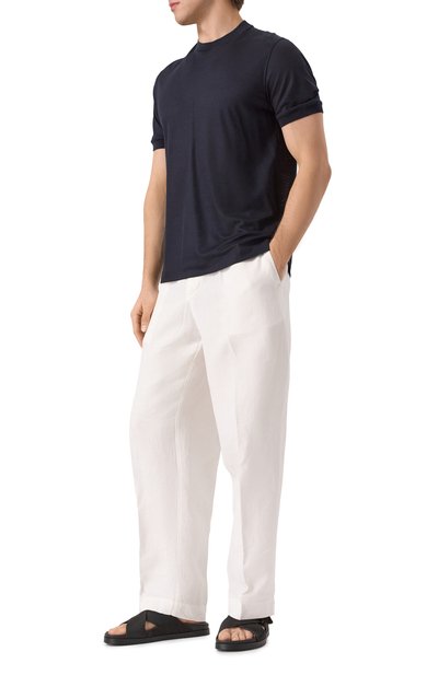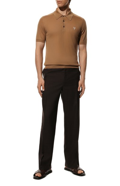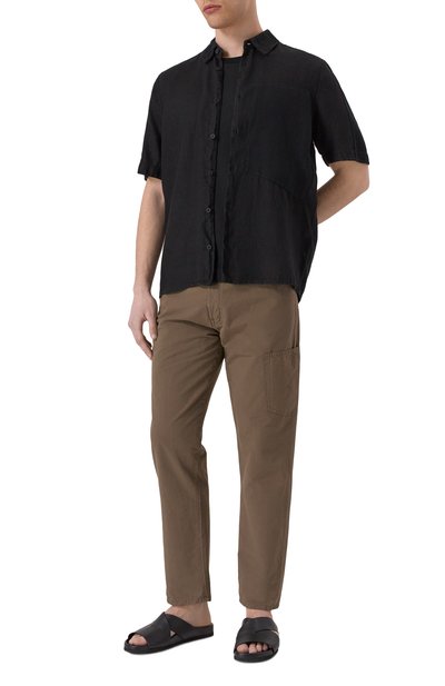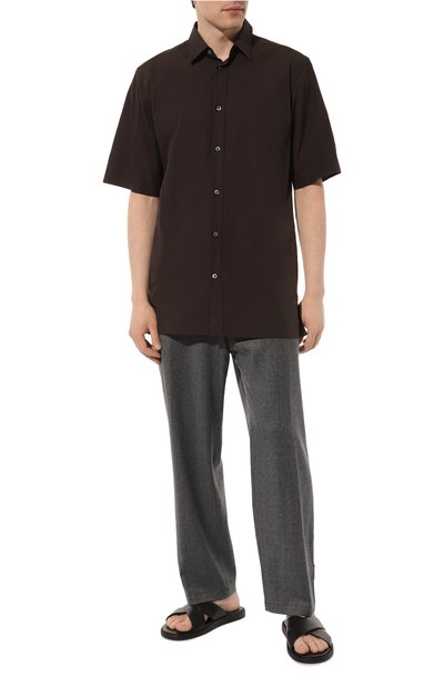 Шлепанцы с формованной стелькой выполнили из бычьей кожи, а слегка выступающую подошву — из термопластичной резины. Одну из перекрещивающихся перемычек на союзке модели украсили тисненой эмблемой марки.