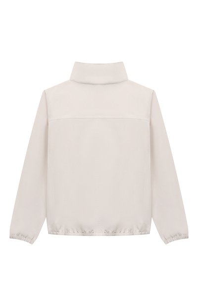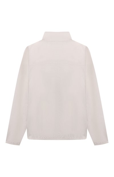 Ветровку с высоким воротом и боковыми карманами украсили фирменной многослойной пластиной. Куртку из эластичного джерси на базе хлопка и нейлона дополнили непродуваемым полиэстеровым подкладом.