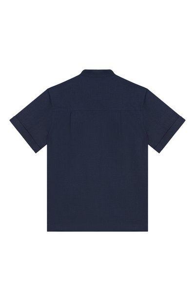 Льняная рубашка с патами на коротких рукавах станет основой летнего образа. Модель с защипами на спинке и воротником «мандарин» украсили контрастным вышитым логотипом.