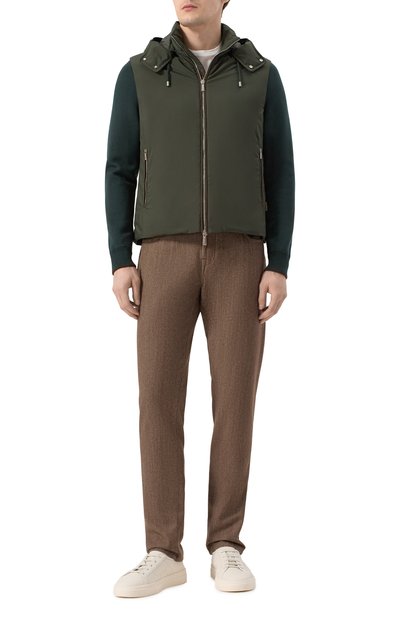 Для изготовления куртки использовали мягкую кожу ручной выделки. Модель с капюшоном, внутренним и внешними накладными карманами застегивается встречной молнией.