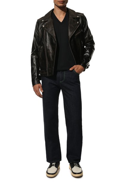 Футболку с круглой горловиной в рубчик выполнили из хлопкового трикотажа. Нагрудный накладной карман украсили вышитой нитью в тон брендированной надписью Maison Est 1965.