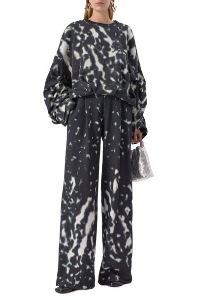 Брюки прямого кроя выполнили из хлопкового трикотажа с принтом Orchid Petal. Модель с высокой посадкой, широким поясом и защипами дополнили тремя прорезными карманами.