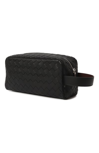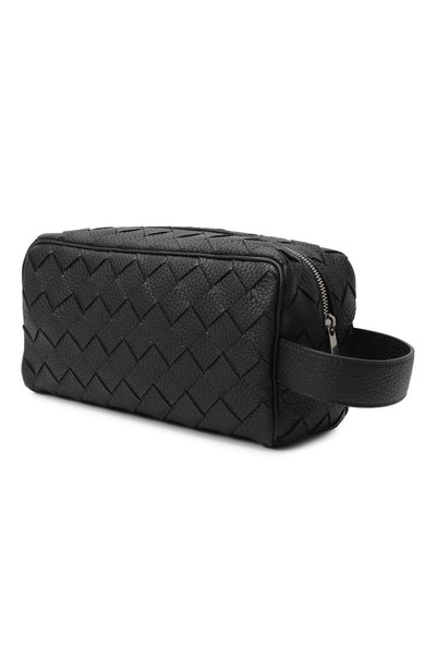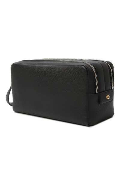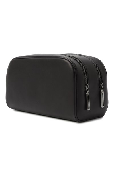 Несессер с двумя отделениями на молнии выполнили из зернистой кожи. Аксессуар украсили вышитой монограммой, заключенной в фирменный октагон.