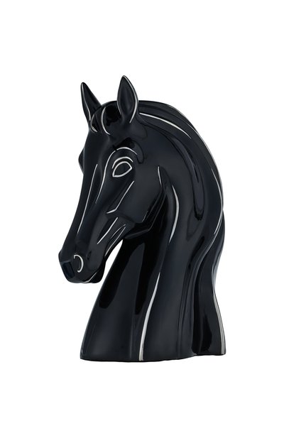 Для создания скульптуры лошади использовали тонкий и прочный флорентийский фарфор, покрытый глянцевой черной глазурью. Рельеф вручную подчеркнули декором из платины, которая надолго сохранит свой благородный блеск.