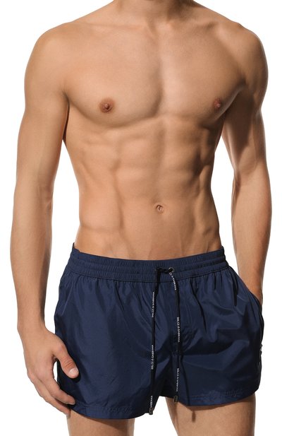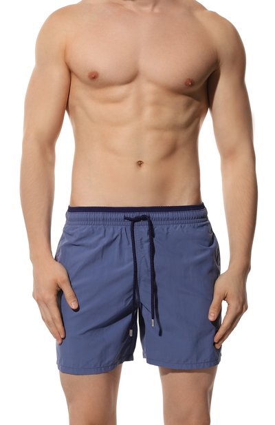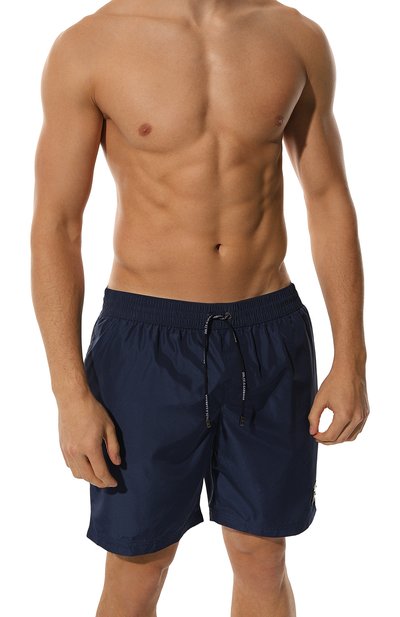Плавки-шорты с эластичным поясом-кулиской и двумя карманами выполнили из полиэстера стрейч. Модель с небольшими боковыми разрезами украсили брендированной вышивкой Summer Lovers слева.