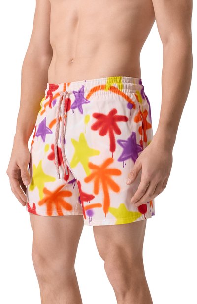 Плавки-шорты с тропическим принтом Summer Lovers Sunset помогут создать яркий пляжный образ. Модель с эластичным поясом-кулиской и небольшими разрезами по бокам выполнили из полиэстера стрейч.