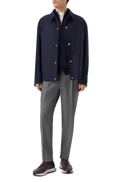Для пошива брюк Ed с защипами спереди и стрелками использовали тонкую ткань из шерсти первого пострига. Модель с эластичными вставками и регулируемой кулиской на поясе дополнили боковыми карманами и задними с клапанами на пуговицах.
