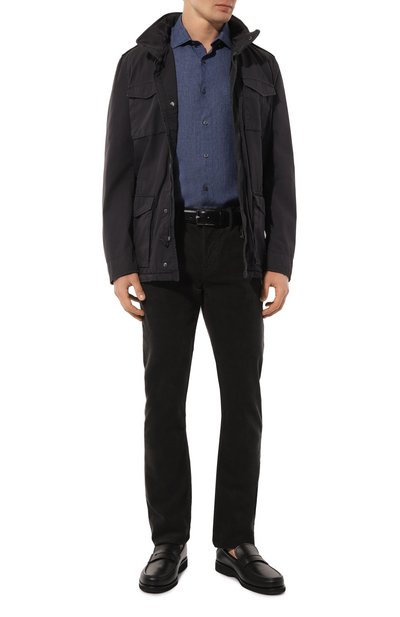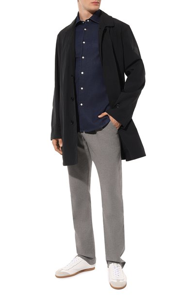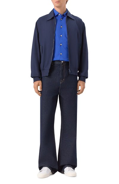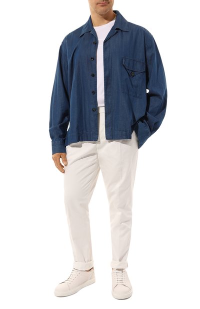 Для пошива приталенной рубашки Per использовали гладкое хлопковое джерси. Модель с воротником «акула» и закругленным подолом застегивается фирменными пуговицами с тремя отверстиями.